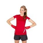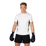 130 gsm, 100% polyester with sweat-wicking properties, The cool-dry fabric wicks the sweat away from the skin to the surface which helps enhance evaporation keeps you cool, dry and comfortable